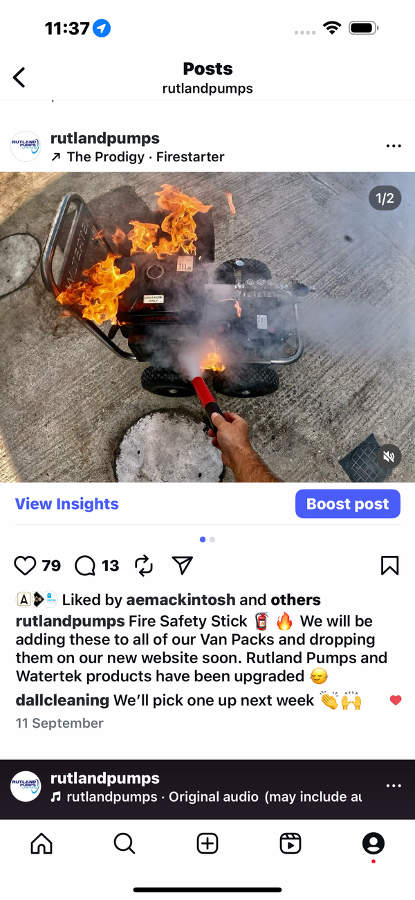 Available on our website, Rutland Pumps is an official stockist for Fire Safety Sticks; No other Pressure Washing company prioritises this level of safety, protecting you, your equipment and your income.