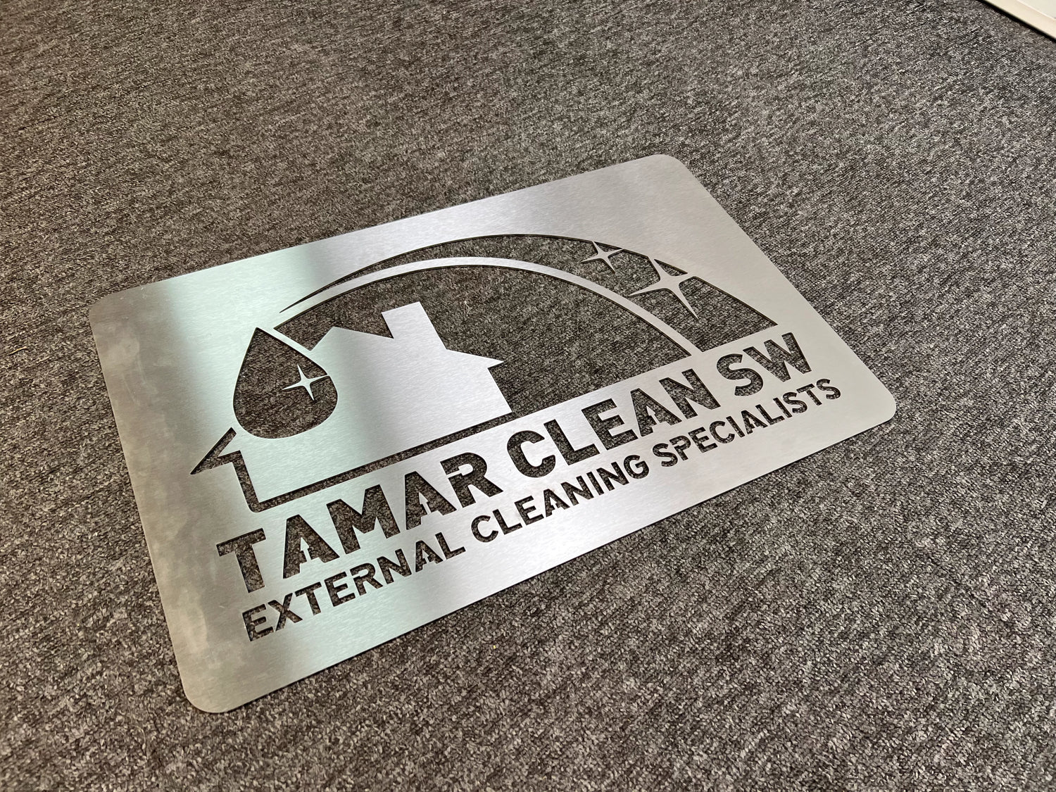 This custom stainless-steel reverse graffiti stencil is precision laser-cut to your design, allowing you to create sharp, professional markings by cleaning around the cut-out area with a pressure washer or soft-wash system. Made from durable stainless steel, it’s reusable, easy to clean, and ideal for branding pavements, walls, and exterior surfaces.