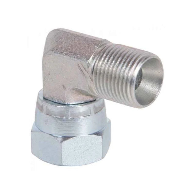 The High-Pressure Plated Steel Hydraulic Elbow is a durable 90° fitting designed to connect BSP female components in tight spaces where straight connections aren’t practical. With a BSP male thread, it allows for a secure, leak-free join while helping to route hoses and fittings neatly around frames and equipment.