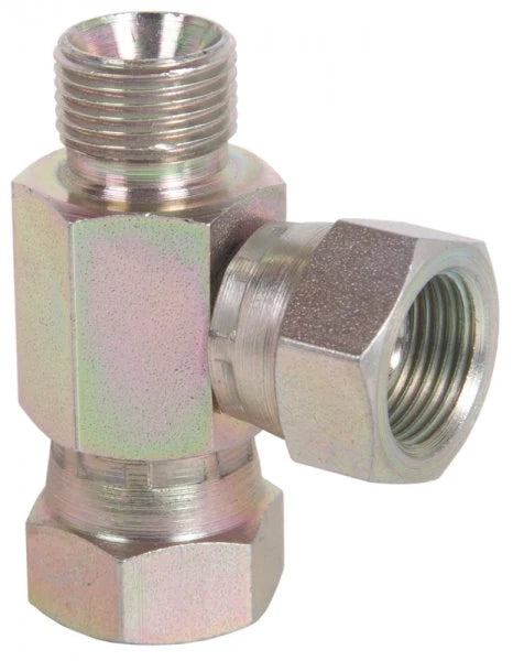 HP Plated MxFxF Swivel Tee BSPM x BSPF x BSPF