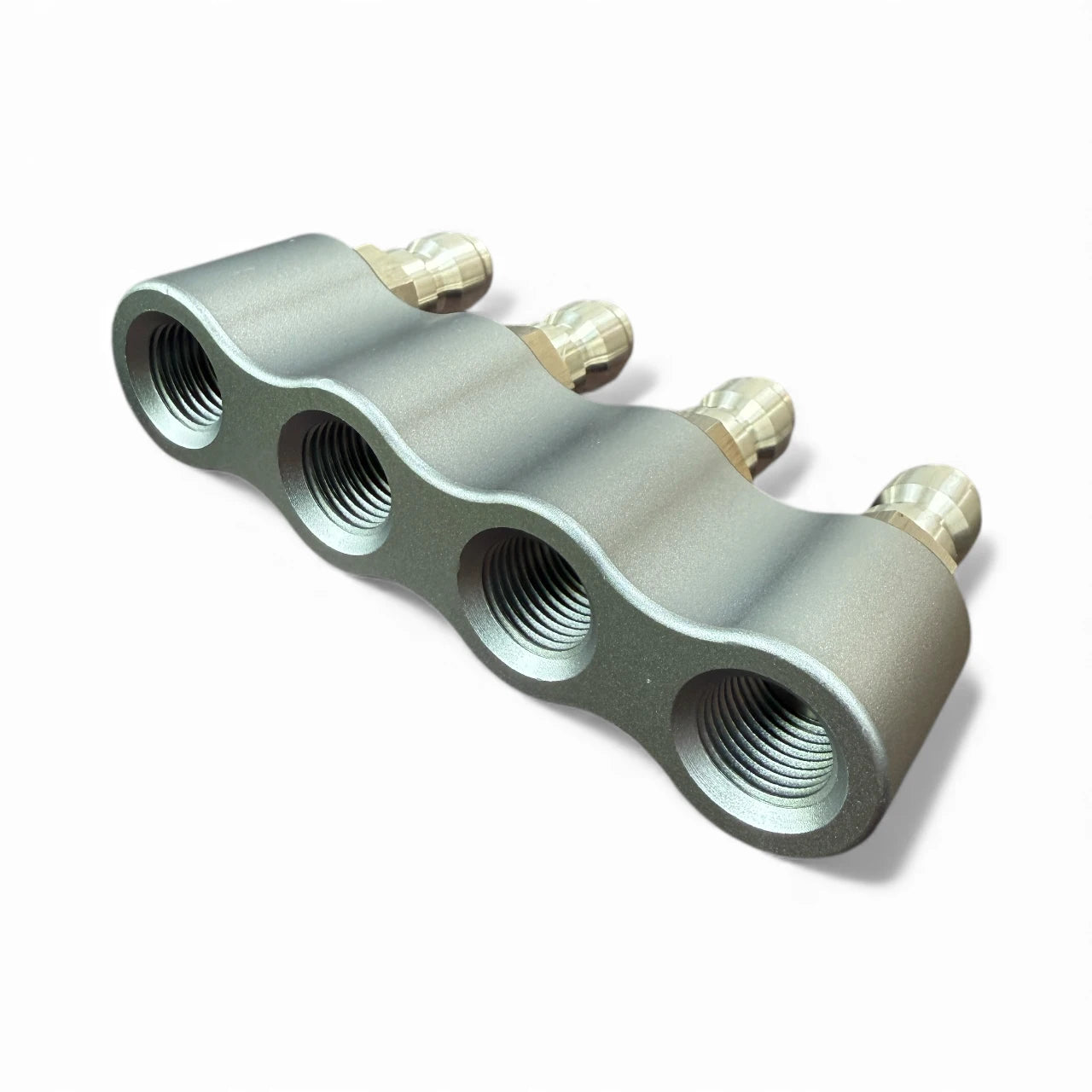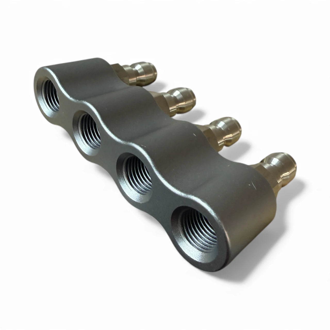 Designed to keep your go to nozzles at hand, no more leaving your nozzles behind. Constructed from aircraft grade aluminium to keep weight to a minimum and coupled to Stainless Steel Mini Quick Release Plugs for durability and strength our Quad Jet give you a variety of nozzle to cover a range of cleaning applications.